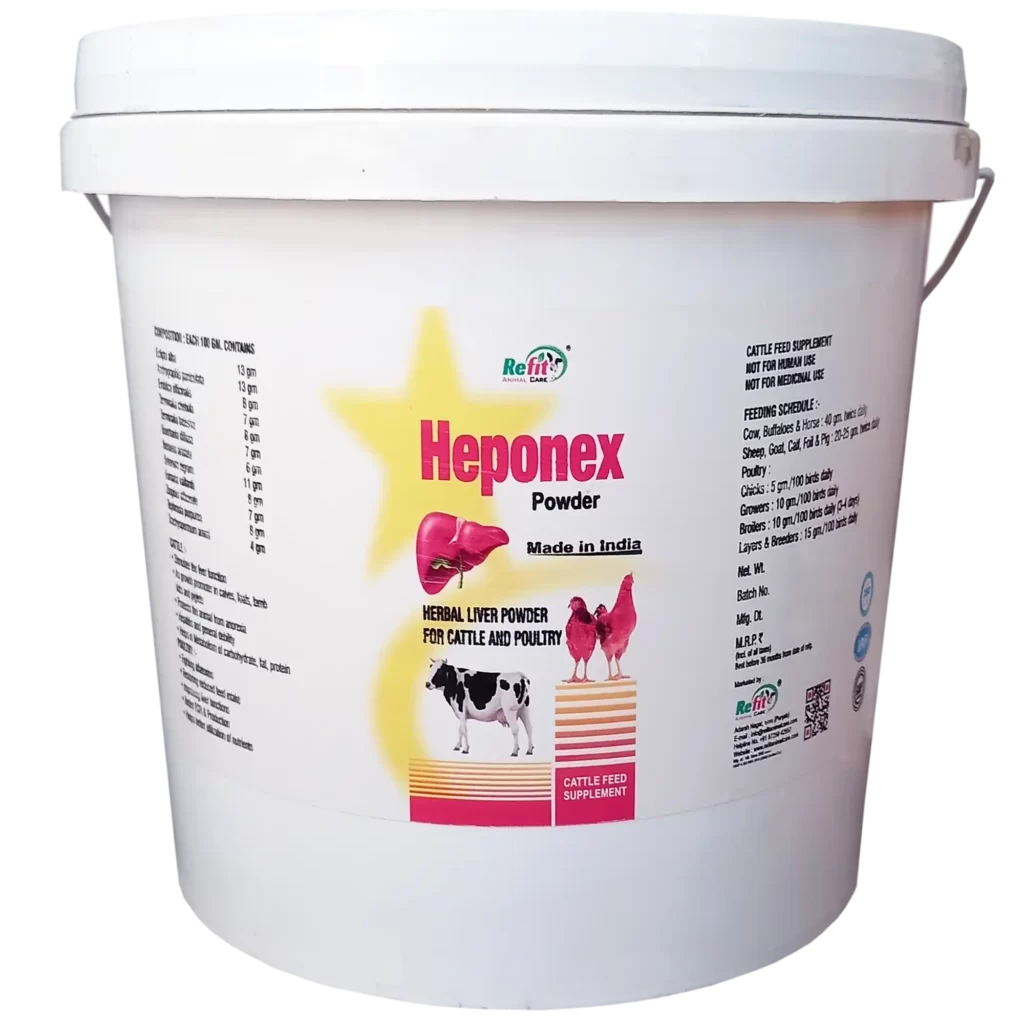 Heponex is suitable for Cow, Buffalo, Goat, Sheep, Cattle, Livestock, & Poultry Birds.
